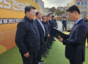 [한국농어촌방송=임리아 기자] 박정훈 농림축산식품부 식량정책실장은 지난 20일 오후 세종특별자치시 도담동 싱싱장터 일원에서 개최된 ‘2025년 전국 쌀 대축제’에 참석해 우수 쌀 전업농을 시상하고 행사장을 둘러보며 농업인들을 격려했다.이번 행사는 (사)한국쌀전업농중앙연합회가 주최했으며, 전국 각지에서 생산된 브랜드 쌀과 가공식품 전시, 체험 프로그램, 종자 전시 등 쌀 소비 촉진과 쌀 산업 가치 확산을 위한 다양한 프로그램으로 진행됐다.박정훈 식량정책실장은 ‘전국 고품질 쌀 생산 우수 쌀 전업농 시상식’에서 고품질 쌀 생산에 기여한