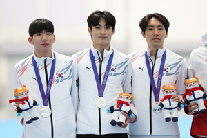[한국농어촌방송=임리아 기자] 한국 빙속의 전설로 불리는 이승훈(37·알펜시아)이 은메달을 목에 걸며 동계 아시안게임 역대 최다 메달 신기록을 달성했다.이승훈과 정재원(24·의정부시청), 박상언(23·한체대)으로 구성된 한국 남자 스피드스케이팅 대표팀은 11일 중국 하얼빈 헤이룽장 빙상훈련센터 스피드스케이팅 오벌에서 열린 남자 팀추월에서 3분47초72로 2위를 기록했다. 1위는 중국 3분45초94였다. 이어 3분52초93으로 일본이 3위를 기록했다.팀 추월은 선수 3명이 함께 400m 트랙을 8바퀴 뛰는 단체전이다. 각 팀은 링크